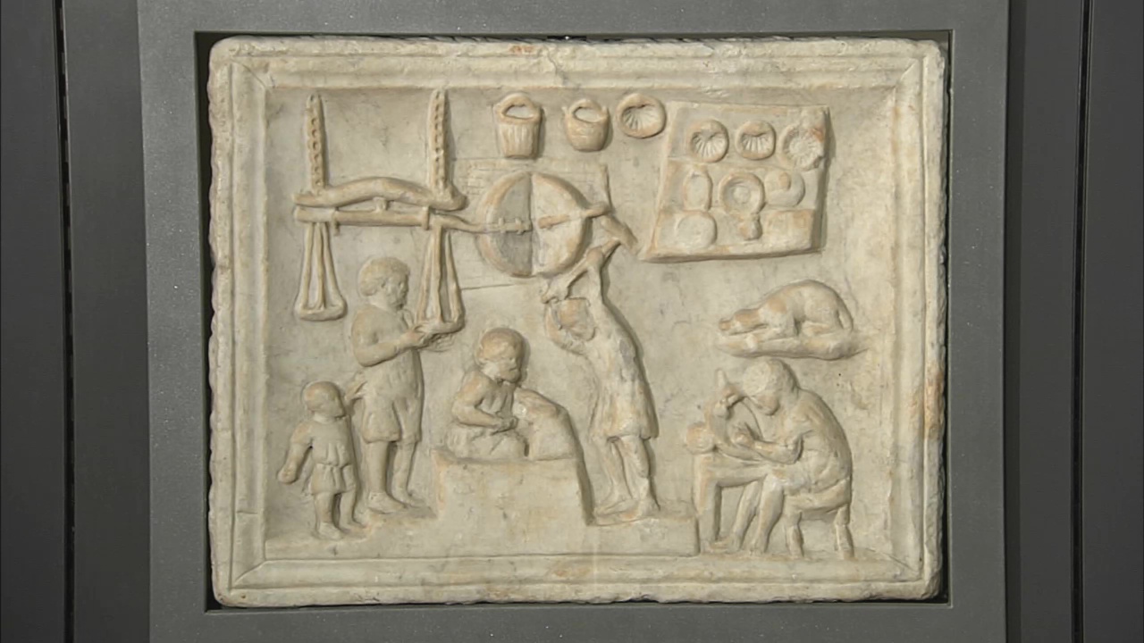 Nearly half the inhabitants of Pompeii are believed to have been slaves. They were generally freed at around 30 years of age, and many of them went on to start up businesses as tradesmen or shopkeepers. Here in the Macellum, slaves would have purchased from slaves, some taking care of their owners‘ households, the others selling the fruits of their own labour. This largest market in the city mainly dealt in meat and fish, as shown by the many bones found in excavations.