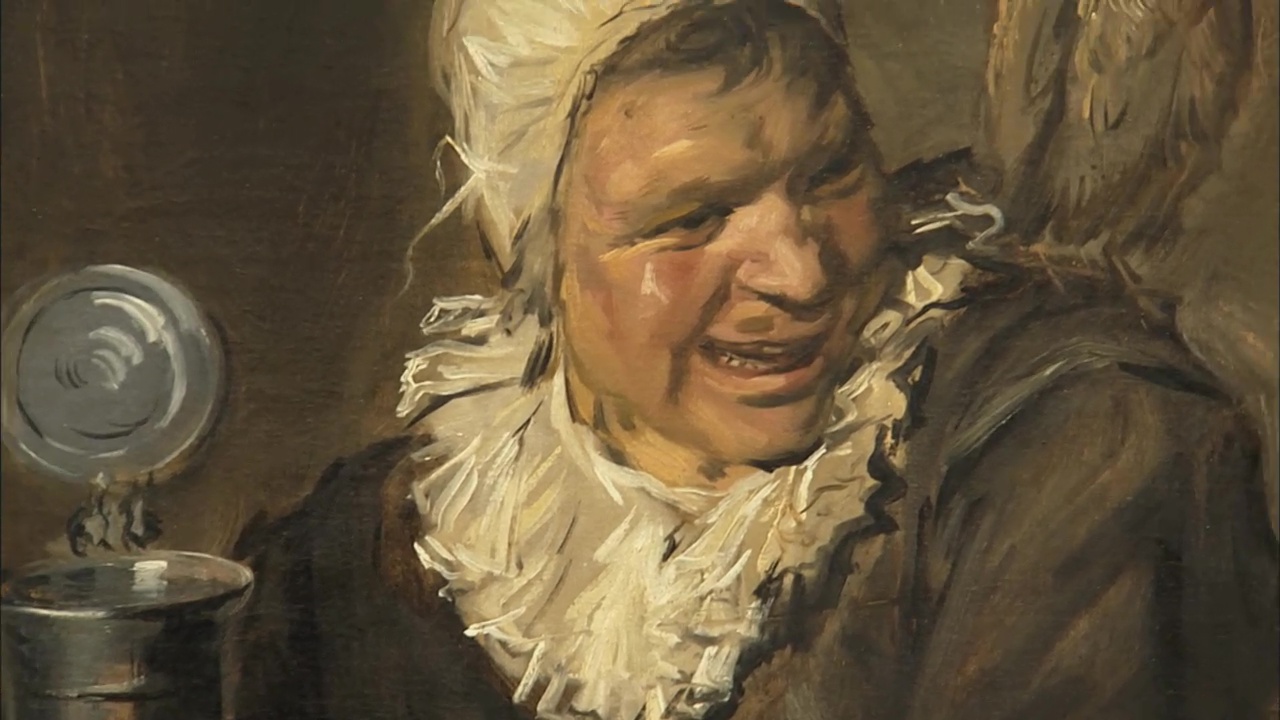 Frans Hals painted her about twenty years earlier. It is not just a portrait of a colourful character, but a warning about the dangers of alcohol. Babbe is clasping a huge beer mug... it is clear why she is laughing and her eyes are glazed. She is, as the Dutch saying goes, "as drunk as an owl". The owl is a nocturnal creature, an emblem for the dark side of life and often associated with witches. The real Babbe was called "the witch of Haarlem".