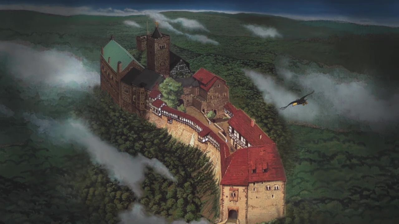 Crow! Crow! Over here! What are you staring at? Never seen a knights’ raven before? I live here. I’ve been here for a thousand years. I’m the Hörsel Crow. How about you? Here to find out how a knights’ castle works, eh? Well, I can certainly tell you some stories. Oh, yes, indeedy. I was here, way back when.